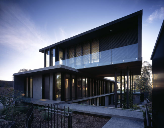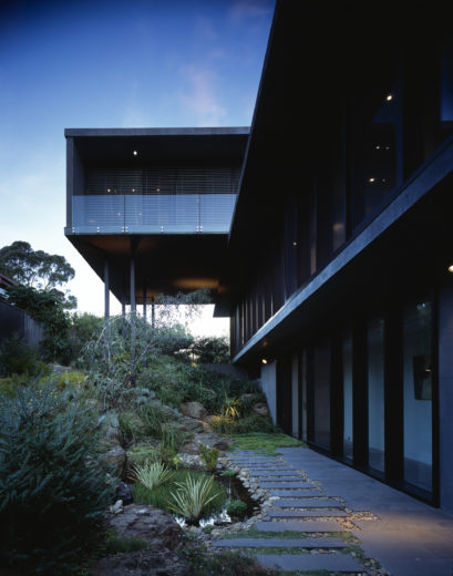 The steeply contoured topography, distant view lines, native vegetation and proximity to the Yarra has demanded a design response different from that of the rest of Melbourne. This house uses the language of the cantilevered box forms of the modernist ‘50s Studley Park neighbourhood character. These forms are cut into the site slope allowing views into the courtyard, as well as satisfying the clients’ spatial requirements and minimising front elevation bulk.